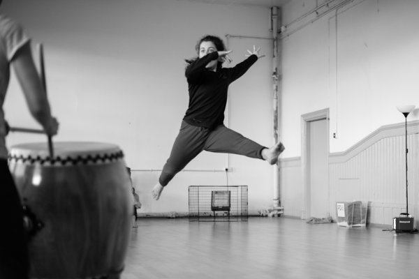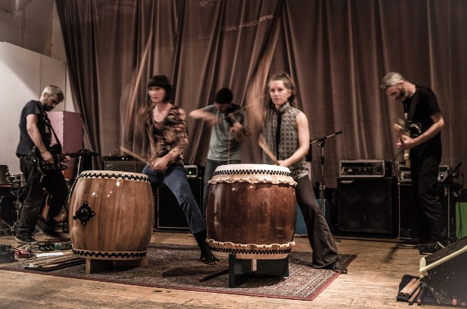 Scotland also has two bands whose music combines taiko with other instruments and vocals. This is actually not that common, as most taiko players play in groups or ensembles focused on taiko drums and the traditional Japanese percussion and flutes associated with them. Issho Taiko Drummers got going in 2007 and currently include voice, gongs, bagpipes, txalaparta, and found sounds. Ilk (which I’m in) kicked off in 2016 with a line-up of taiko, electric guitar, bass guitar and violin. There’s also Velma, a new flute band by Georgie McGeown from Ilk which features a wee bit of taiko. And members of Ilk collaborate with dancers from time to time.